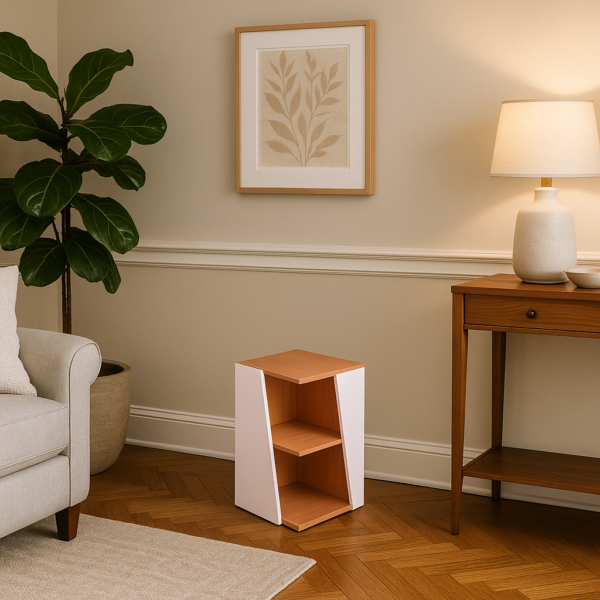 - Style raffiné : Disponible en blanc avec accents en chêne, pour une intégration parfaite dans tous types d’intérieurs.